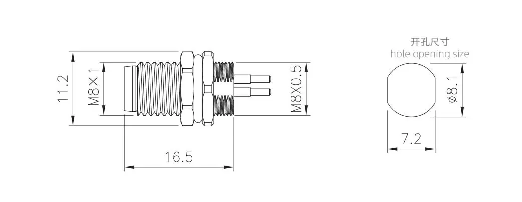 M8女性フロントマウントソケット(PCB、ネジM8*0.5)