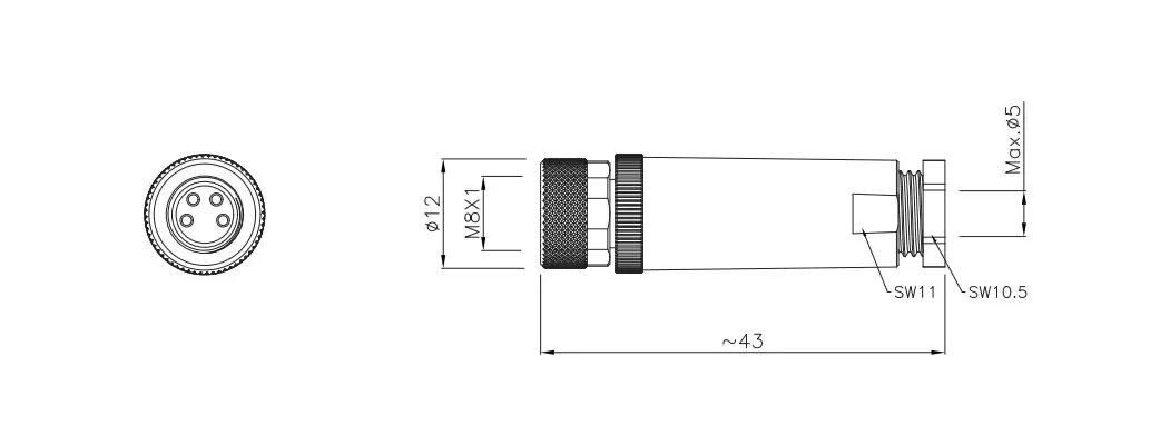 | M8ストレートメスプラスチックアセンブルプラグ5Bはんだ | M8-S5B-PWA05 | 5ピンBコード | ||