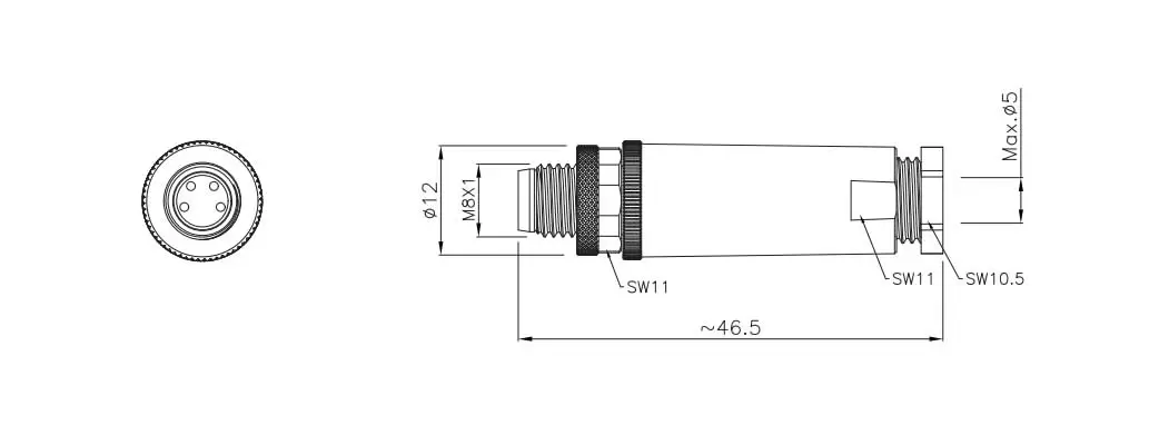 | M8ストレートオスのプラスチック組み立てられたプラグ5Bはんだ | M8-P5B-PWA05 | 5ピンBコード | ||