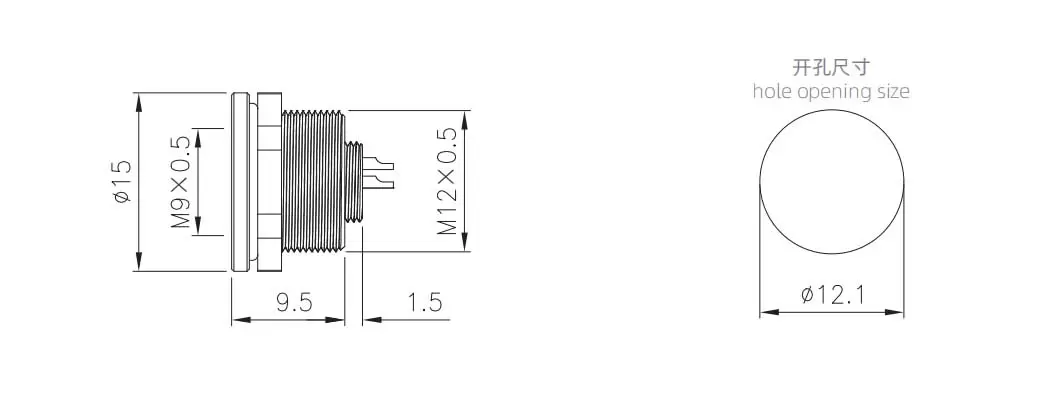 | M9女性フロントマウントソチェクト(はんだ) | M9 -S3 -GWBM12 | 3ピンAコード | ||