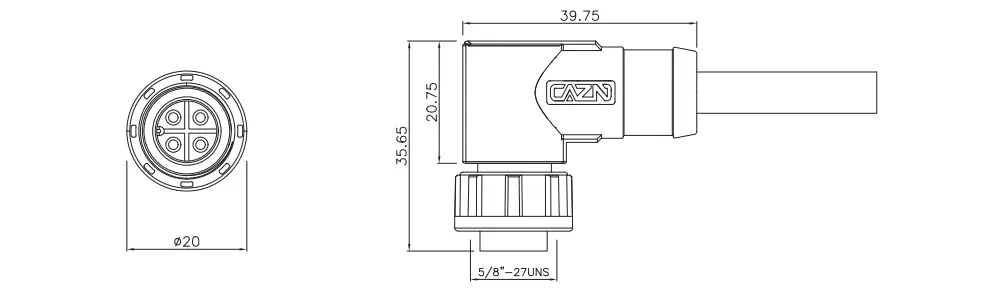 | E10直角雌のオーバーモールドプラグ(スレッド) | 60V | 5a | E10T-S3-MWD-XPV | 3 | ||