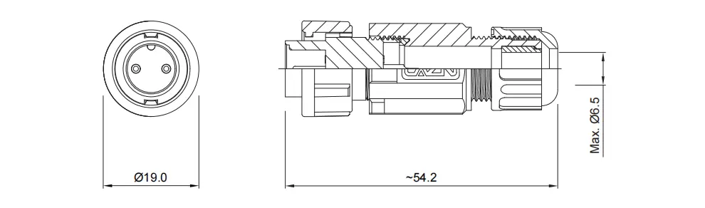 | シェル素材: | 熱可塑性プラスチックPA66、火炎遅れとグレード:V-0 |