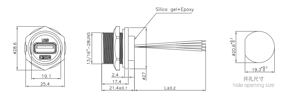 | ワイヤー付きのUSBメスバックマウントレセプタクル(ねじれ) | USB 3.0 | E13T-FU3-PWF-0.2PV |