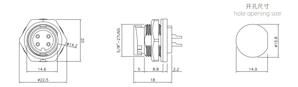 | E10メスバックマウントはんだレセプタクル(Bayoネット) | 60V | 5a | E10B-S8-PWF | 8 | ||