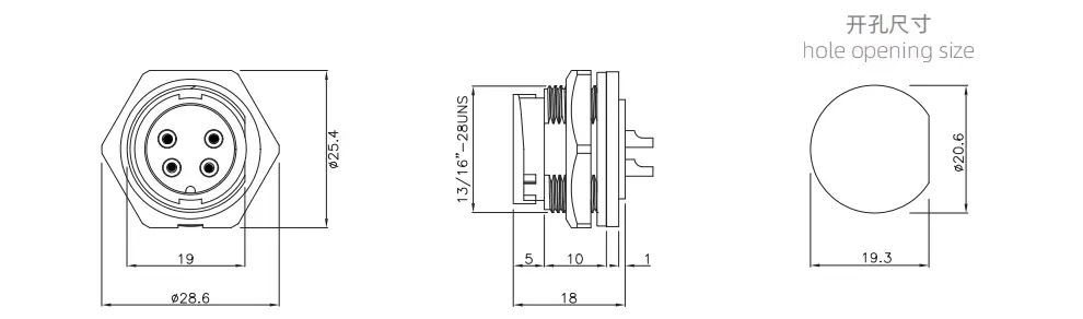 | E13バック マウント男性レセプタクル(銃剣) | 300V | 20a | E13B-P4B-PWF | 4b | ||