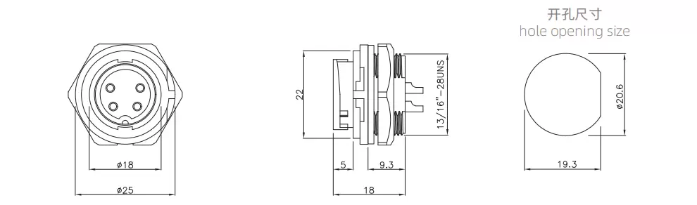 | E13フロントマウントメスレセプタクル(銃剣) | 30V | 2a | E13B-S18-PWB | 18 | ||