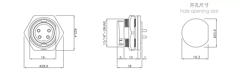 | E13 PCBバックマウントメス レセプタクル(銃剣) | 300V | 20a | E13B-S4B-PPF | 4b |
