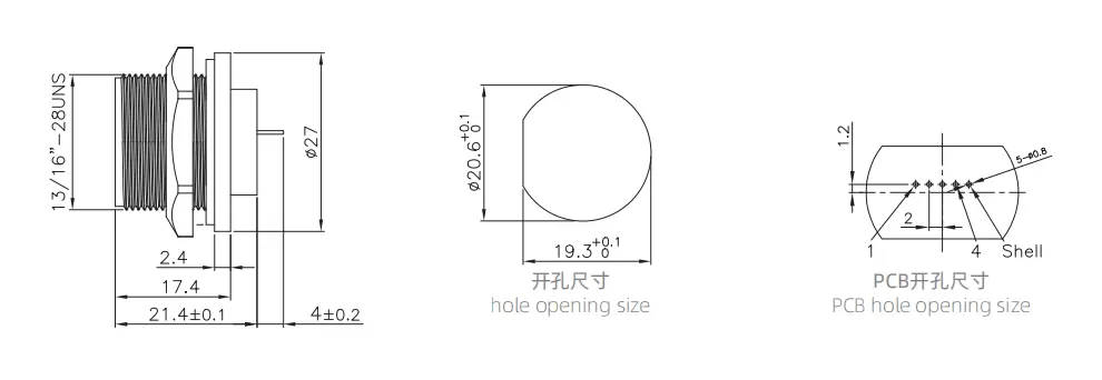 | USB女性バックマウントPCBレセプタクル(スレッド) | USB 2.0 | E13T-FU2-PPF | ||